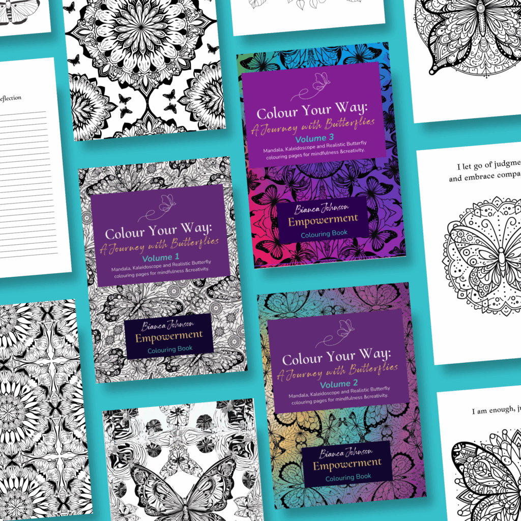 Immerse yourself in the ultimate mindfulness experience with this complete three-volume butterfly colouring collection. This special bundle brings together the entire “Colour Your Way” journey at a value price.